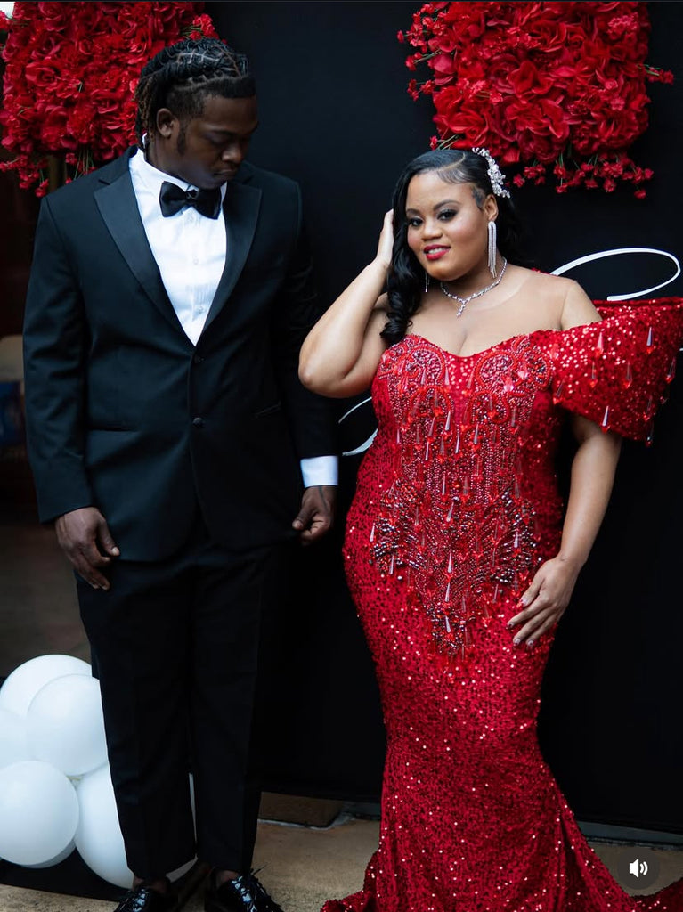 This stunning mermaid gown is crafted with sequin velvet and adorned with hanging crystals, making it perfect for a glamorous night out.